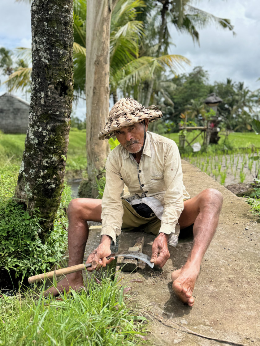 Travail de nettoyage dans une rizière de Jatiluwih